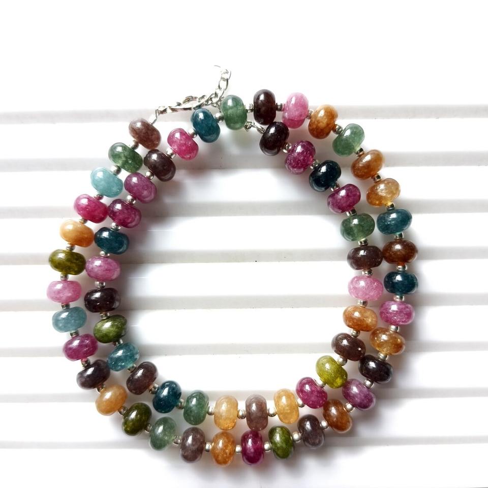 Collar de Turmalina Multicolor Natural, Cuentas Redondas Lisas de 8mm, Joyería de Piedras Preciosas Hecha a Mano, Regalo de Piedra Natal de Octubre para Ella