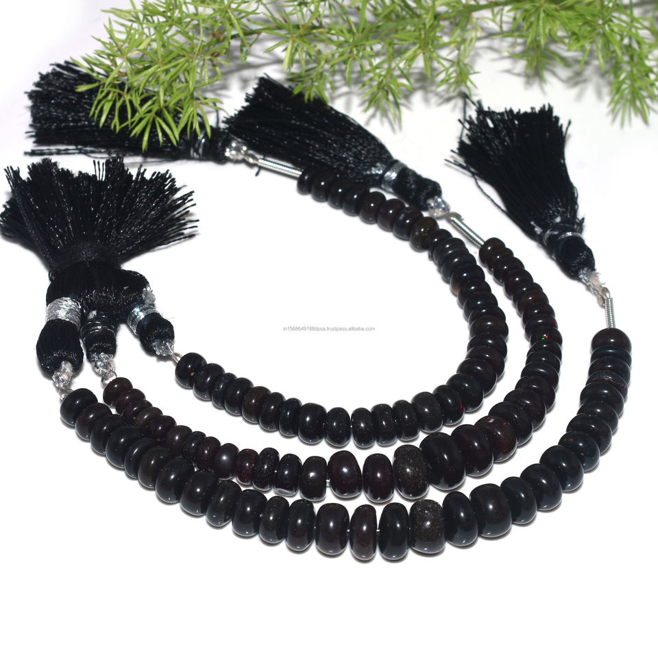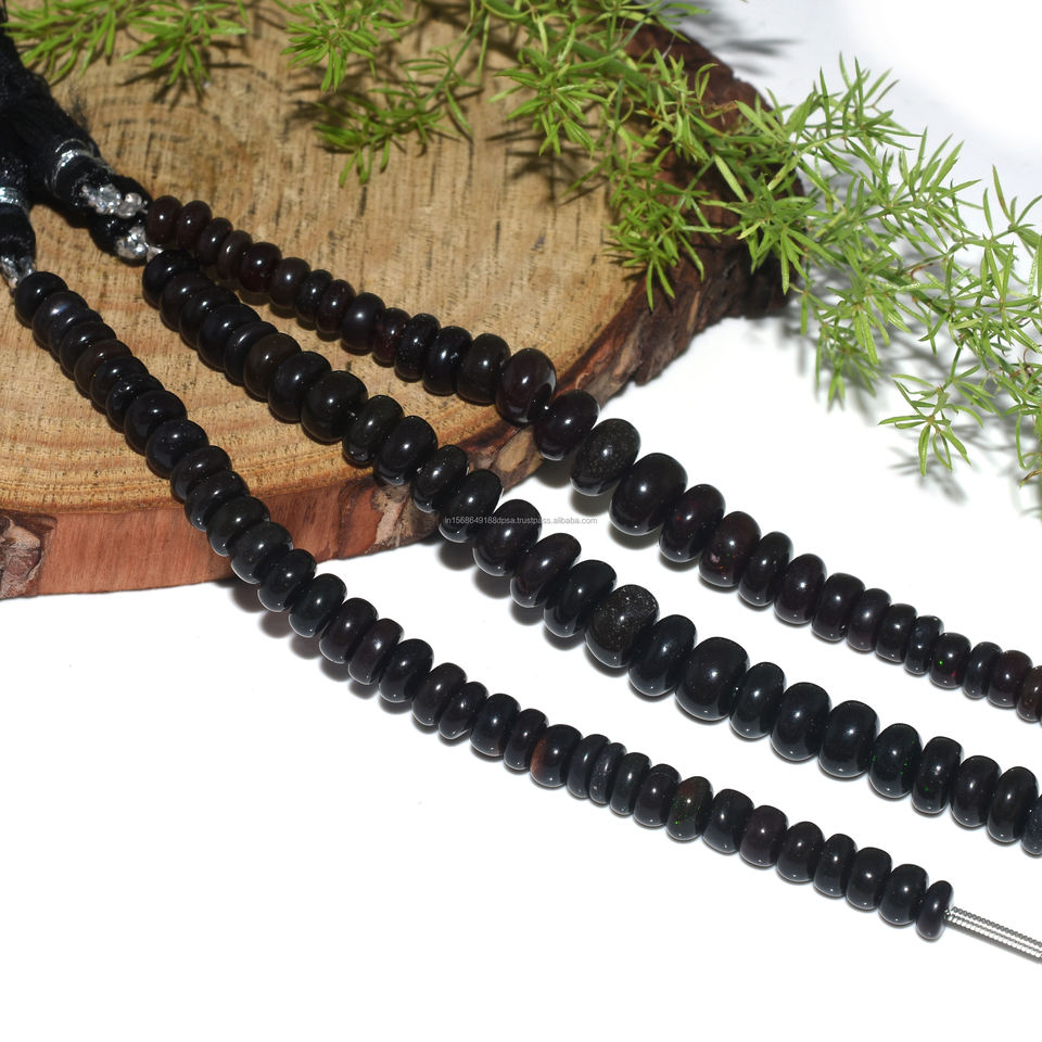 Cuentas de forma de Rondelle lisas de ópalo etíope negro Natural 4 "pulgadas 5x5 a 8x8 MM hebra de piedras preciosas para hacer pulsera de joyería