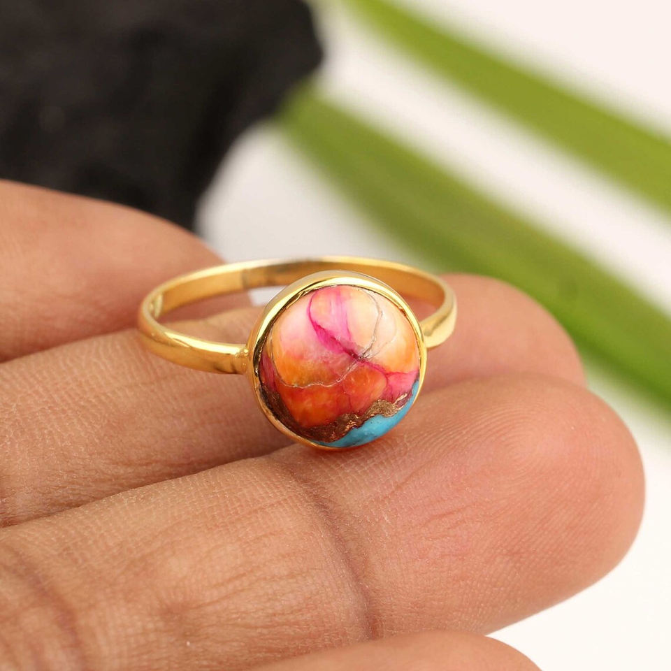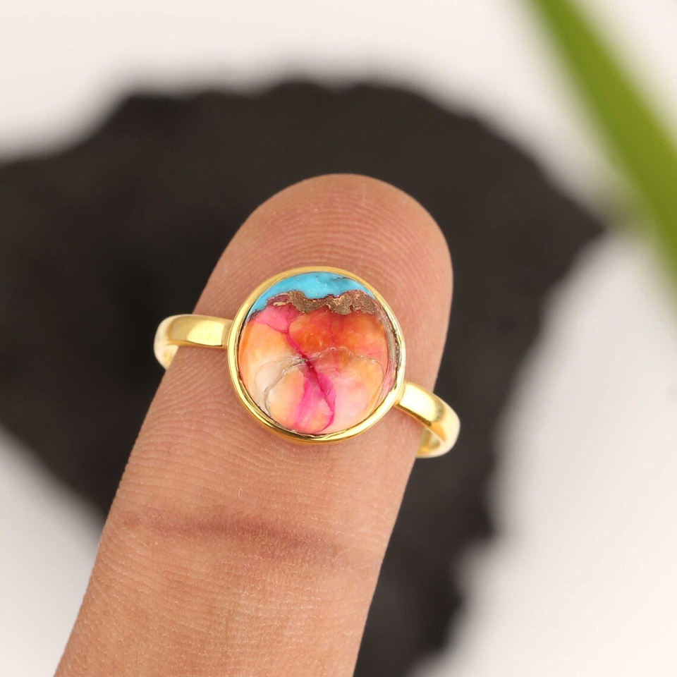 Nombre del Producto:Anillo de Turquesa Cobre con Dalia Naranja