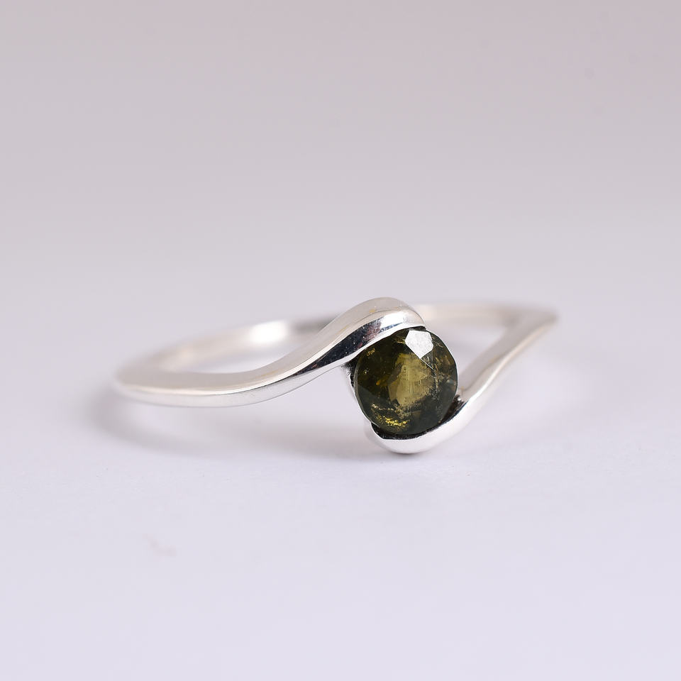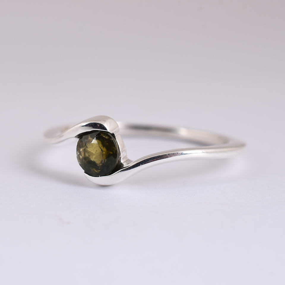 Anillo de piedras preciosas de moldavita Original Natural, piedra preciosa rara auténtica moldavita, anillo de diseño hecho a mano, anillo de Plata de Ley 925