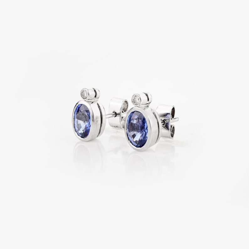 Pendientes de Oro Blanco de 14K con Zafiro Azul Ovalado Natural, Piedra de Nacimiento de Septiembre, con Cierre de Presión, Regalo para Ella