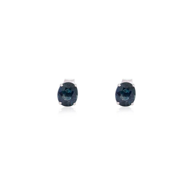 Palabra clave:Pendientes de botón con zafiros azules brillantes.