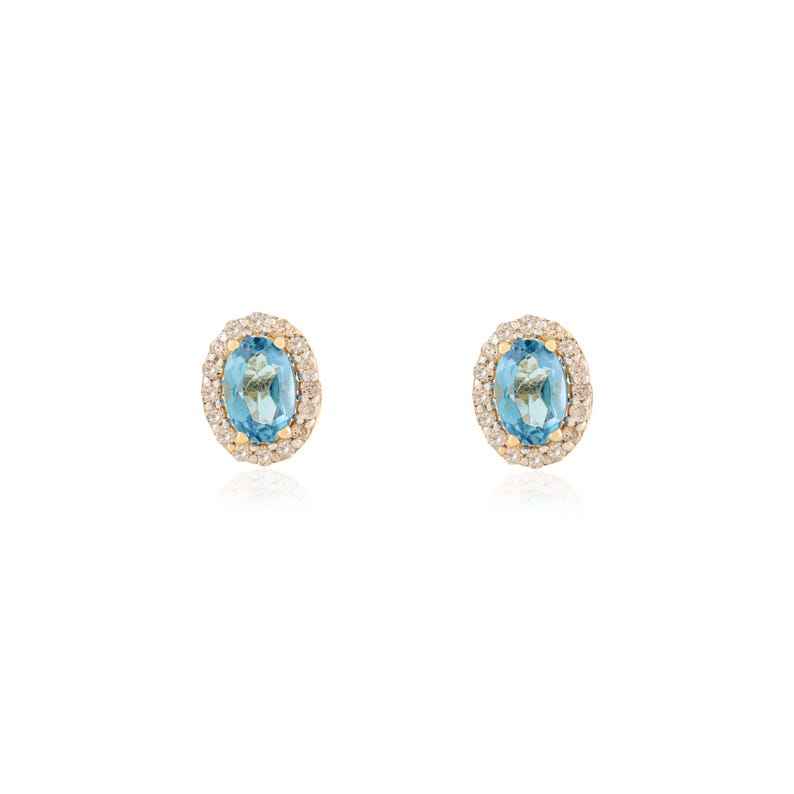 Pendientes de Topacio Azul Ovalado Natural, Plata de Ley 925, Chapado en Oro Amarillo de 14K, Piedra de Nacimiento de Diciembre, Regalo