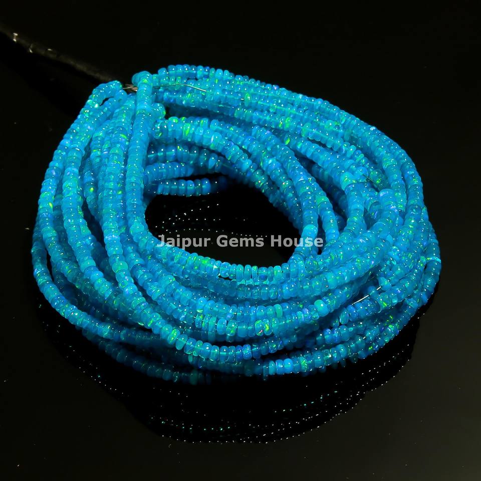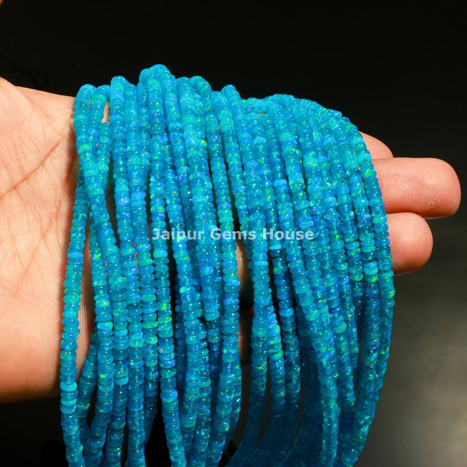 Cuentas Redondas Lisas de Ópalo Azul Paraíba Natural de 3 mm y 5 mm, Cuentas de Ópalo Etíope Azul Brillante, Cuentas de Ópalo Welo de 16 Pulgadas de Largo