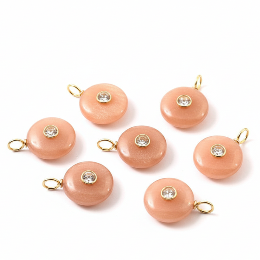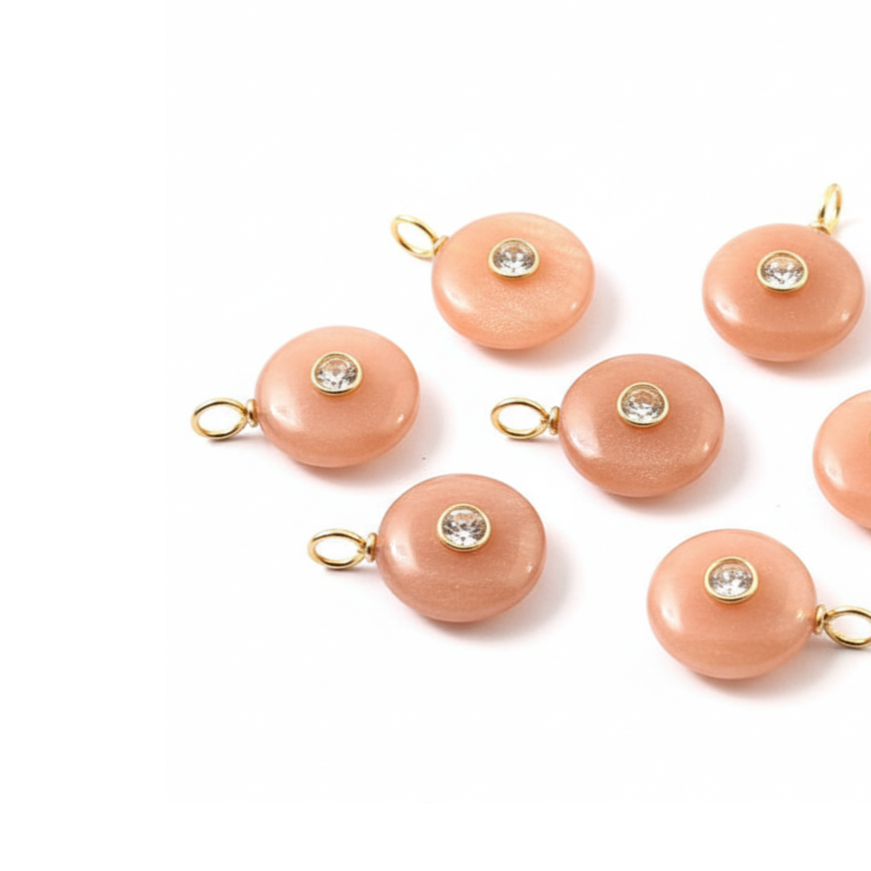 Product name:Natural Peach Moonstone Round Shape Inlay Gemstone Pendant