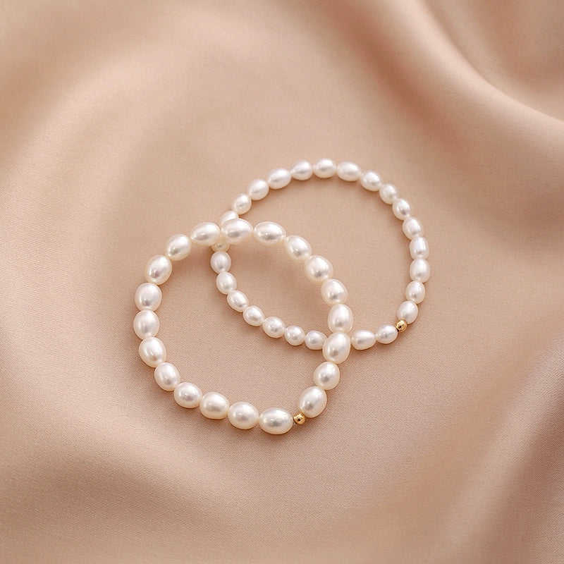 Pulsera Elástica con Perlas Naturales de Agua Dulce, Grado AAA, Forma de Arroz, Color Blanco