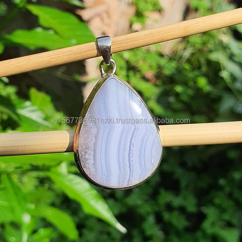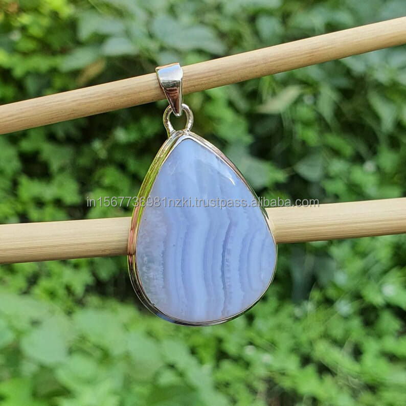 Nombre del producto:Colgante de Plata de Ley 925 con ágata de encaje azul