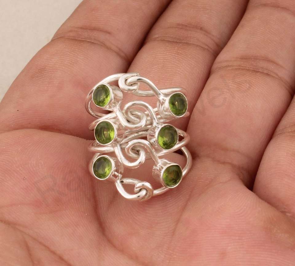 Nombre del producto:925 plata esterlina piedras preciosas peridoto anillo