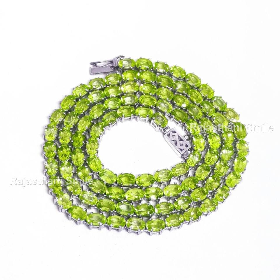 Collar de Peridoto Natural con Corte Ovalado para Mujer, Plata de Ley 925, Tamaño de Piedra 6 x 4 mm, Rodio, Moderno, Excelente Idea de Regalo