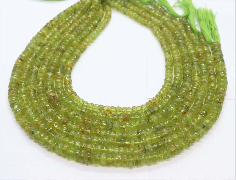 Cuentas de peridoto natural lisas en forma de rondel de 5-6 mm, cuentas de peridoto en forma de rondel, cuentas de peridoto sueltas para la fabricación de joyería al por mayor.
