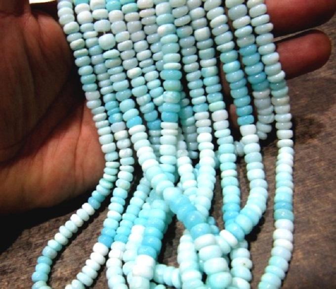 Cuentas de ópalo azul peruano natural Rondelle lisas de 5-6mm de tamaño hebra 8 pulgadas de largo para hacer joyas