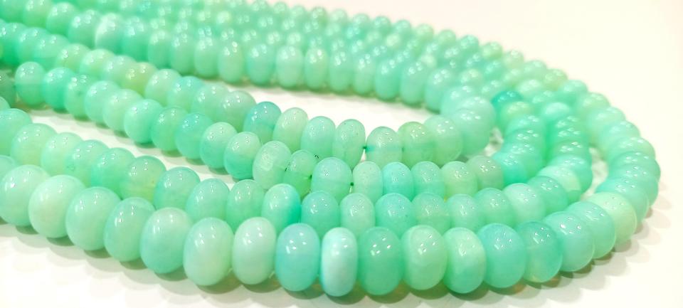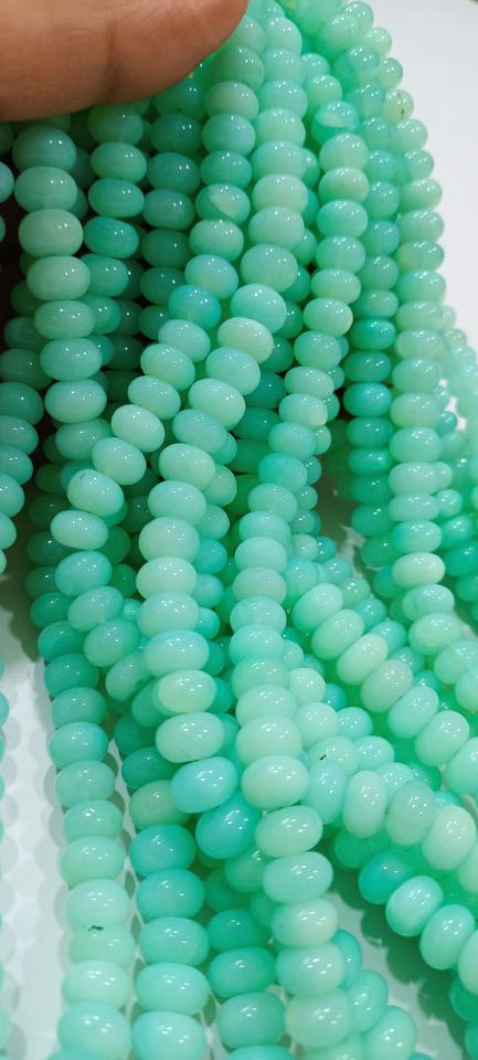 Cuentas de piedra de Calcedonia verde peruana natural Rondelle 8-9mm liso para la fabricación de joyas vendidas por hebra 8 pulgadas de largo
