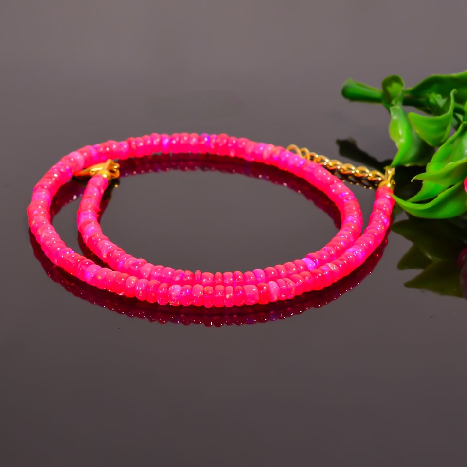 Collar de ópalo etíope de fuego Rosa natural, collar de ópalo con cuentas, collar de ópalo de fuego de plata 925 Starling, collar delicado.