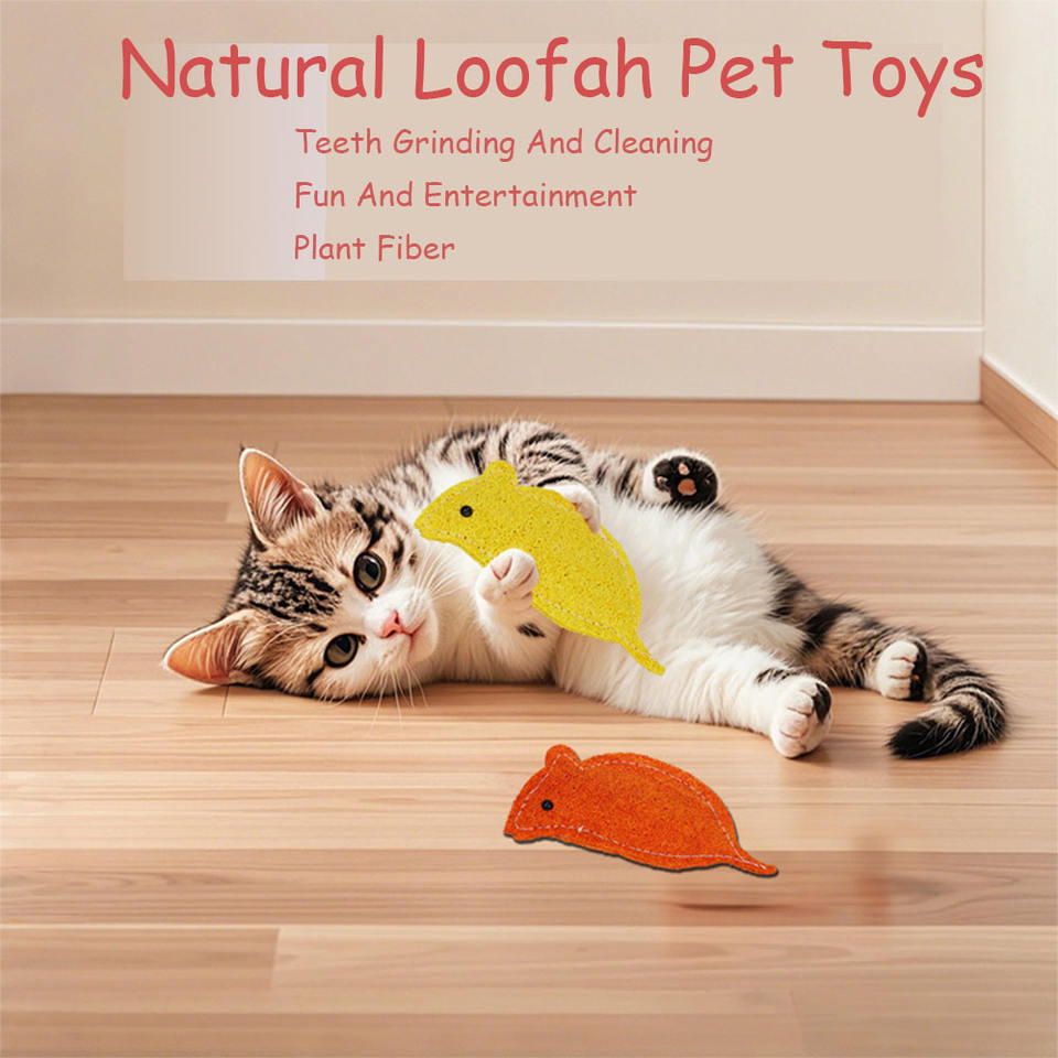 Juguete de Fibra Vegetal Natural con Forma de Pez para Gatos, Suave, Moderno, Tipo Esponja, para Masticar y Limpiar los Dientes de Mascotas, Empaquetado en Cartón