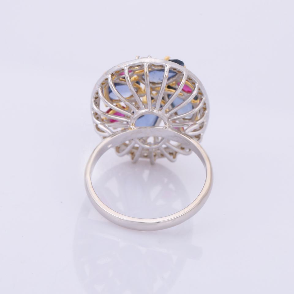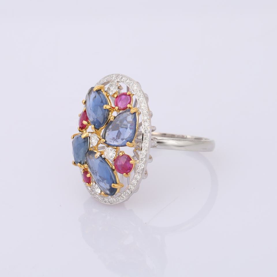 Anillo de cóctel de diseñador de oro blanco sólido de 18 quilates, Diamante de zafiro rubí precioso Natural para boda, fiesta de compromiso, moda