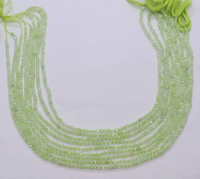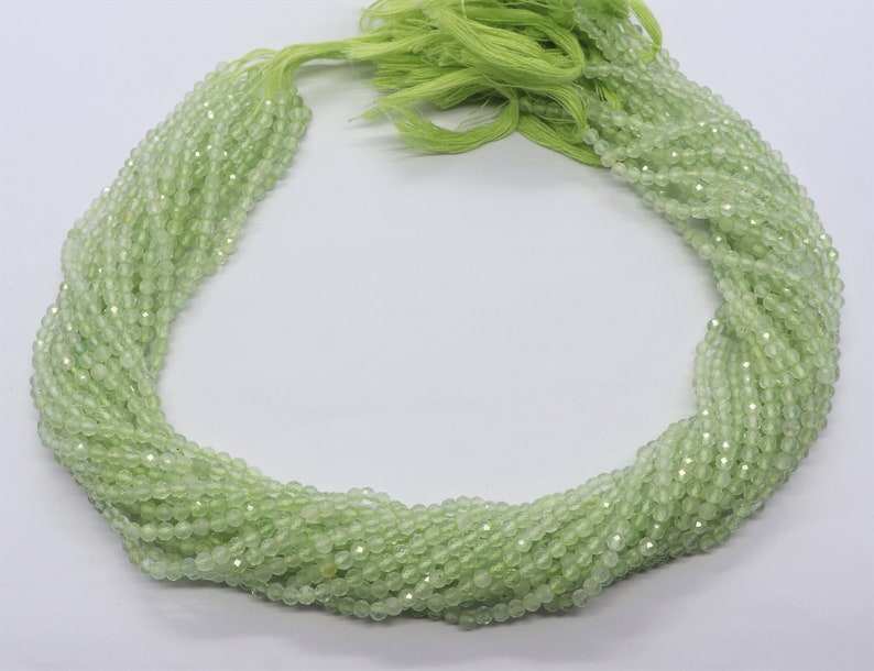 Cuentas facetadas de prehnita natural de 3 mm, cuentas de piedras preciosas de prehnita, 13 pulgadas, cuentas de prehnita natural para la fabricación de joyería.