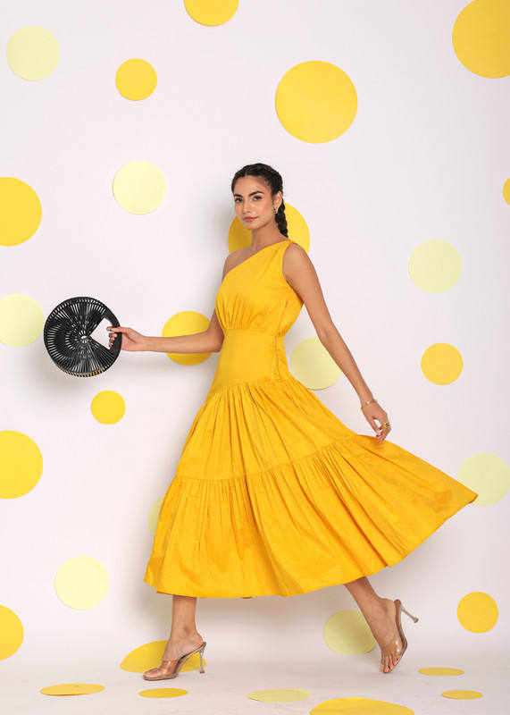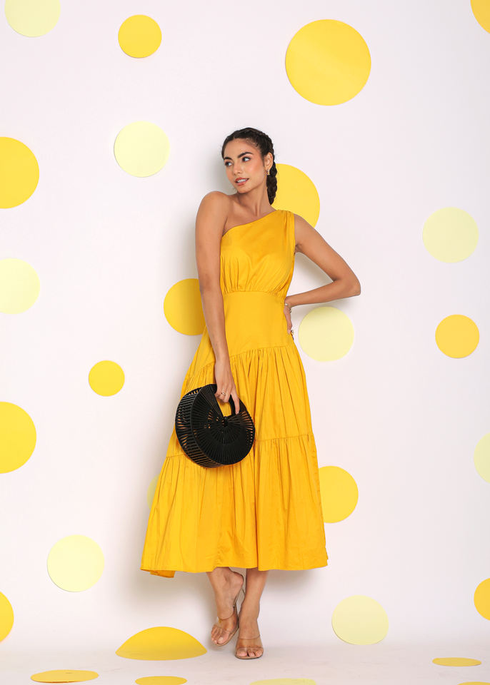 Nombre del producto:Vestido MIDI sólido amarillo de algodón