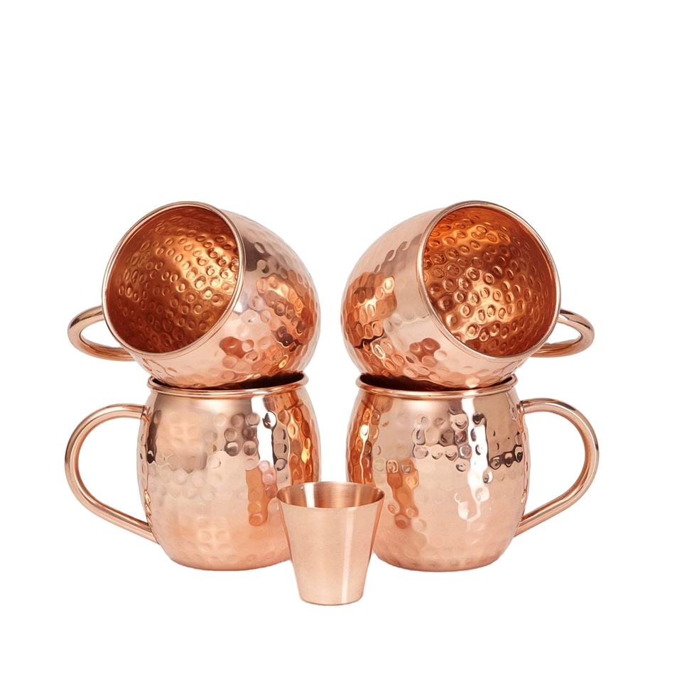 Cobre martillado puro natural 4 tazas pieza y con 1 vidrio Moscow mula cobre cerveza bar accesorios para la venta