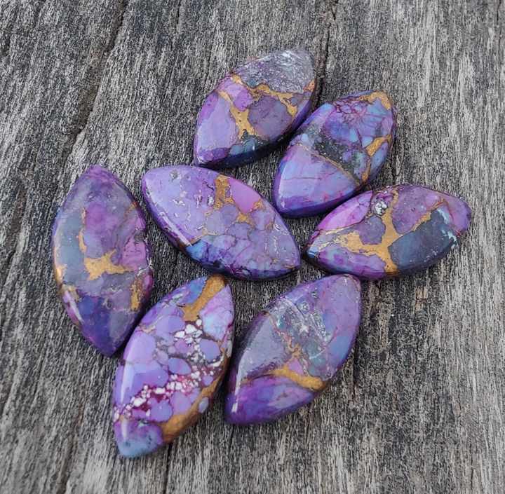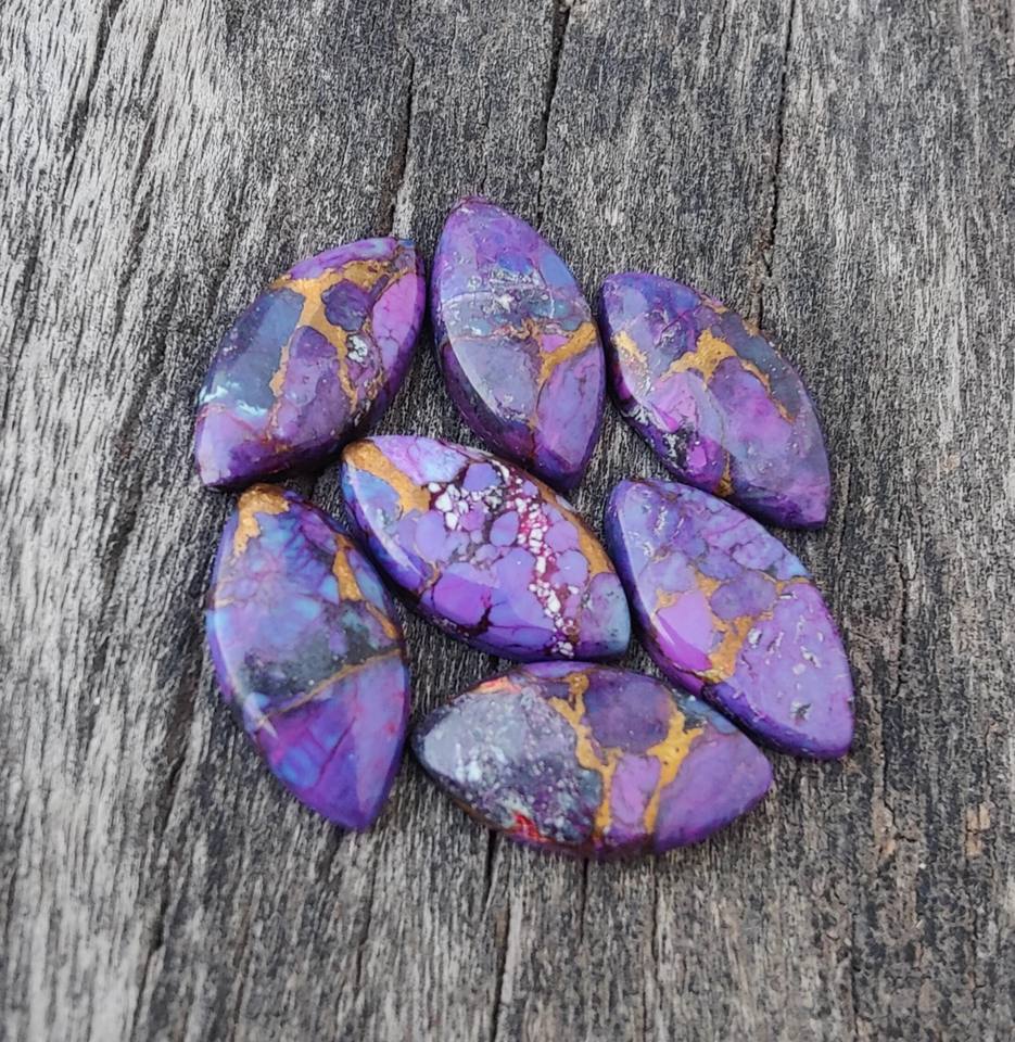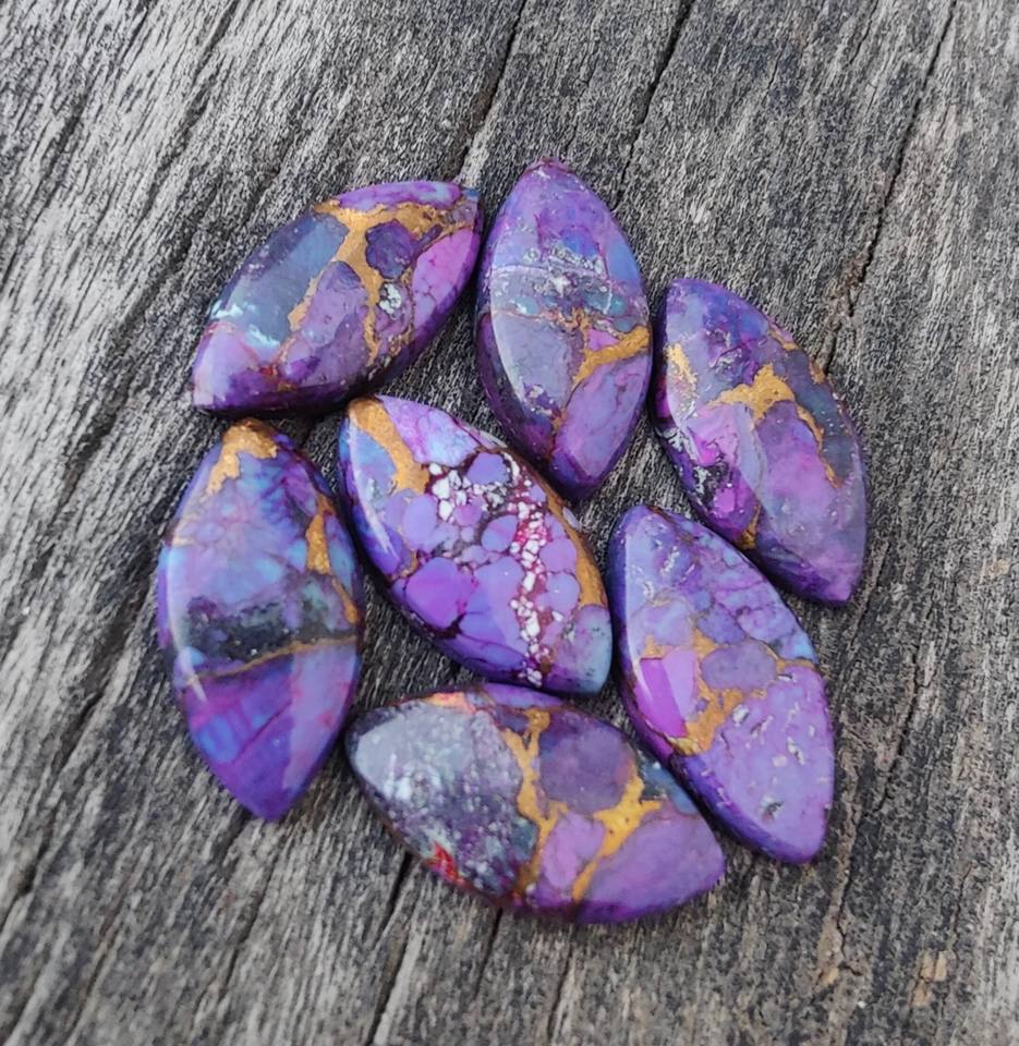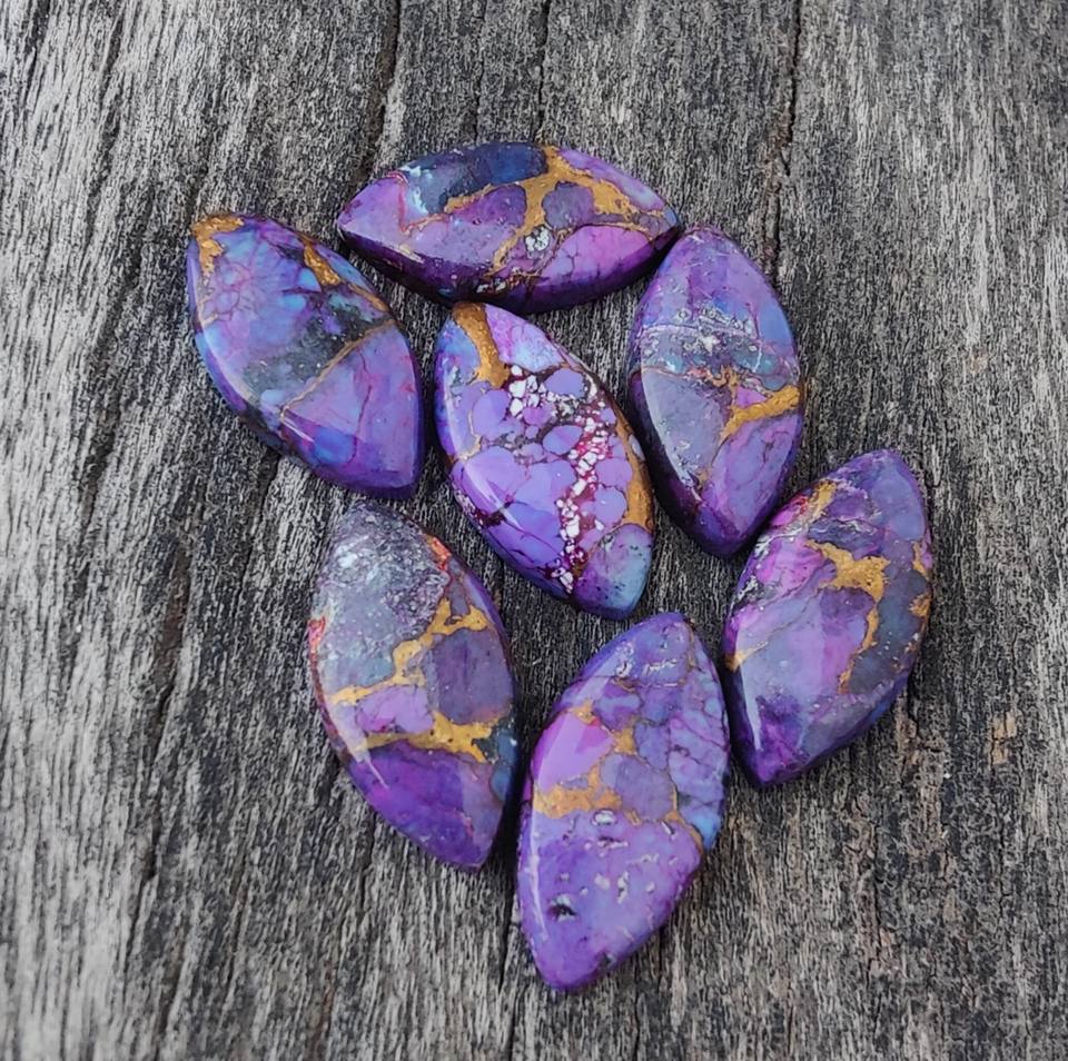 Cabujón con forma de marquesa turquesa de cobre púrpura Natural de grado AAA, piedra preciosa suelta certificada IGI calibrada con parte posterior plana para joyería