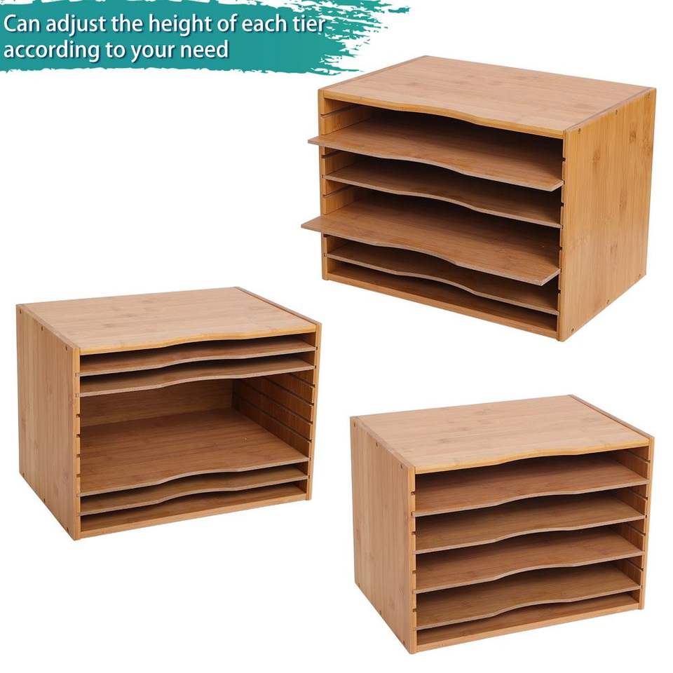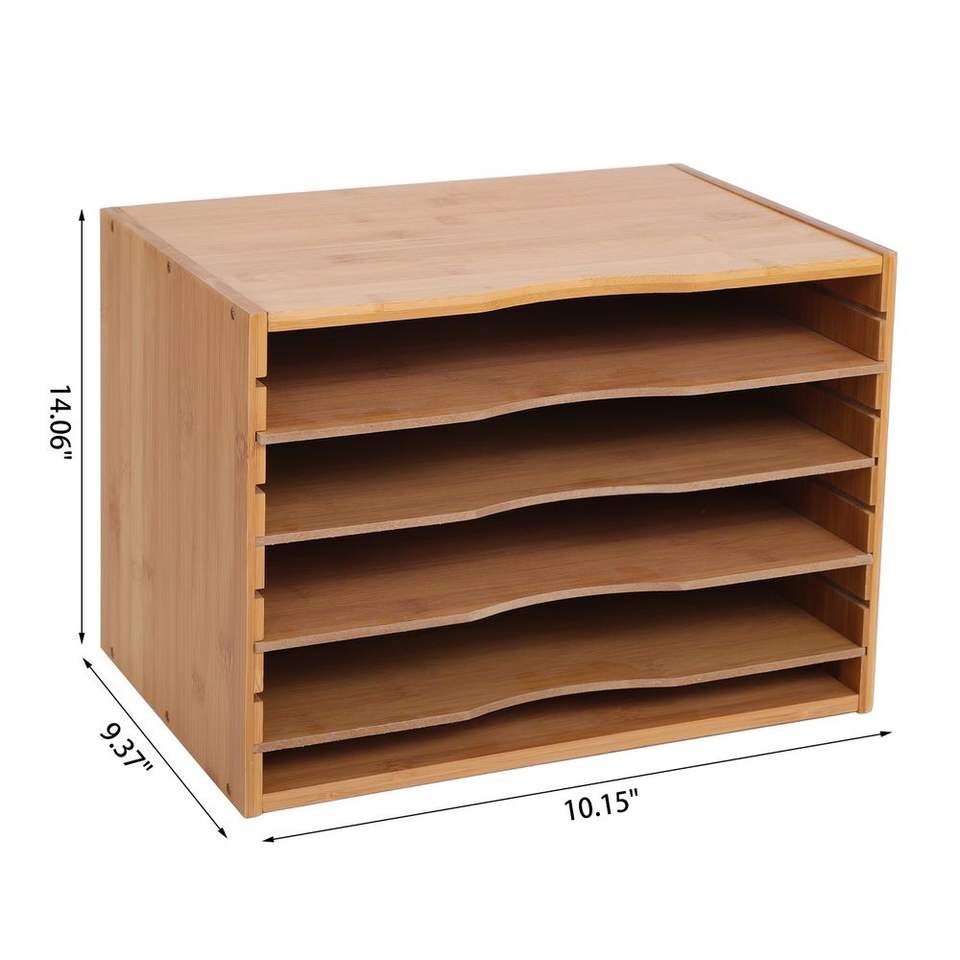 Organizador de Archivos de Escritorio para Oficina en Casa Natural RT, 4 Estantes Ajustables con Bandeja para Documentos, Cartas y Correo