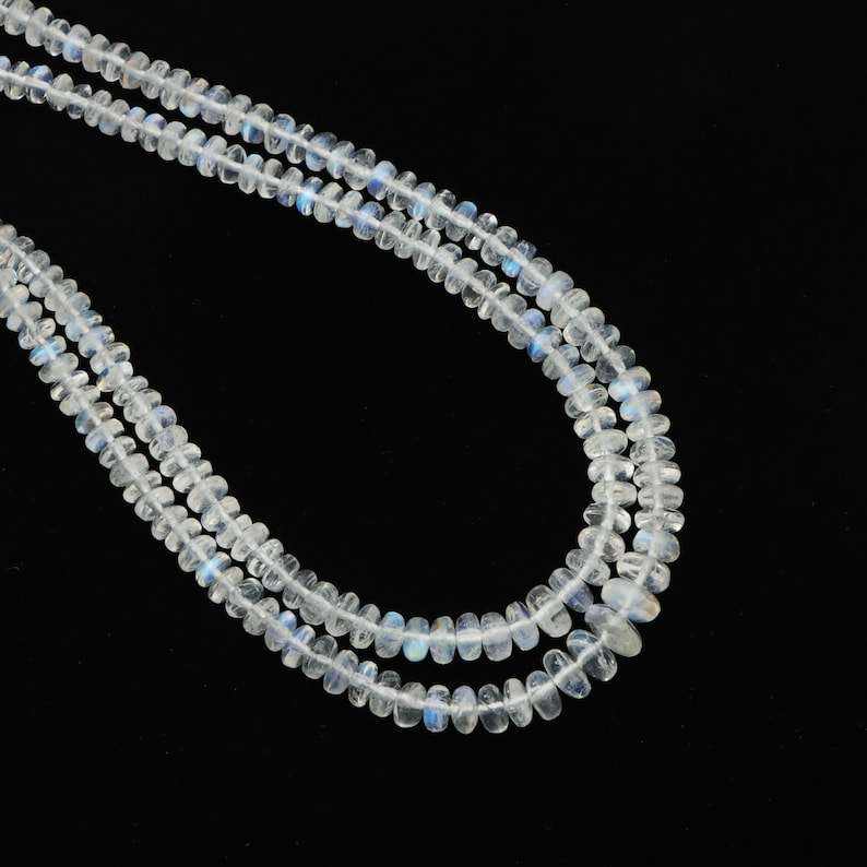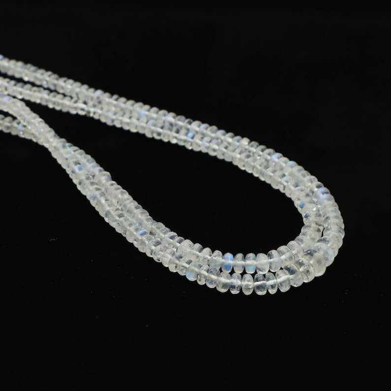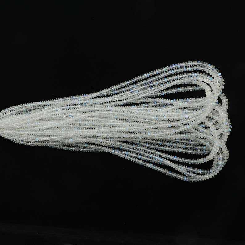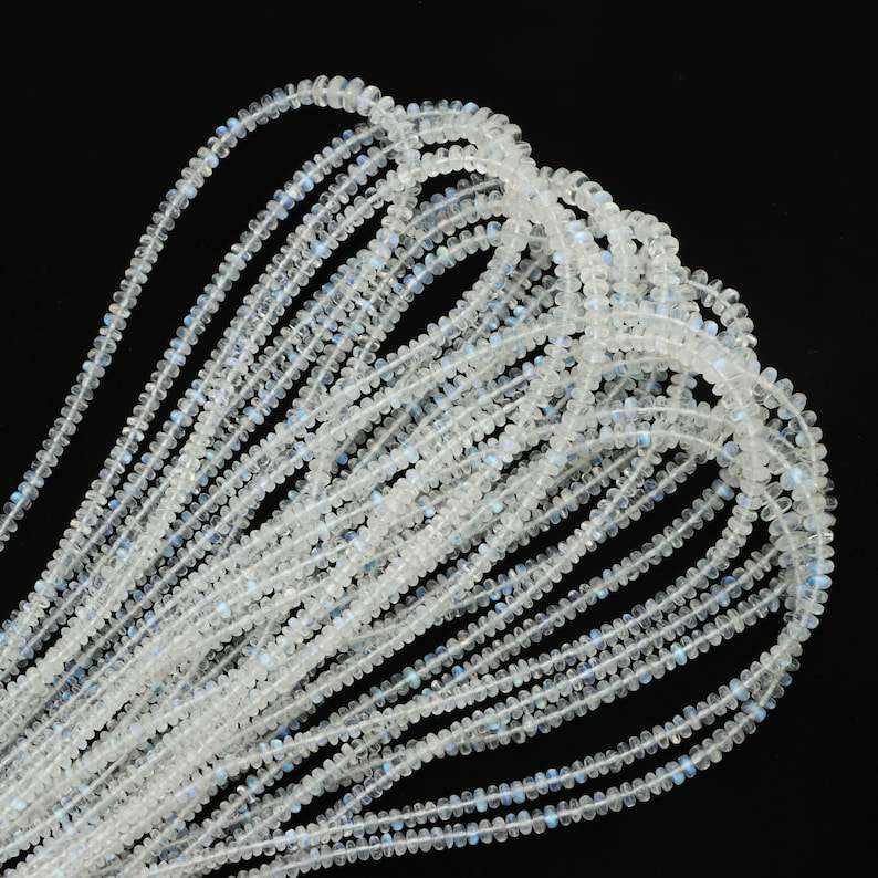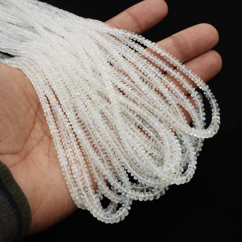 Cuentas sueltas de piedra lunar arcoíris natural, lisas, en forma de rondel, de 3-5 mm, con perforación central, para la fabricación de joyas, venta al por mayor.