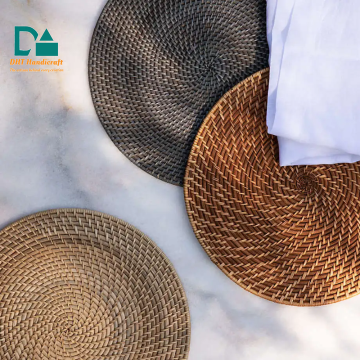 Plato de Carga Sostenible de Ratán Natural de 13 Pulgadas, Estilo Boho Rústico, Mantel Individual para Fiestas, Tamaño y Color Personalizables para Bebés y Niños, al por Mayor DHT