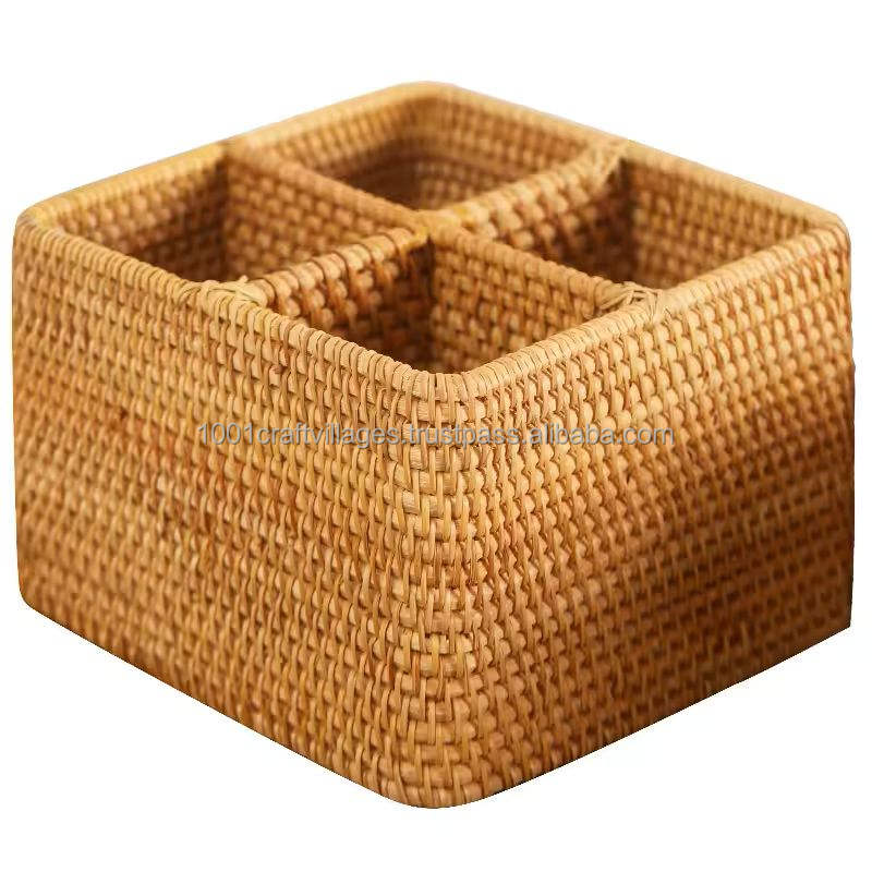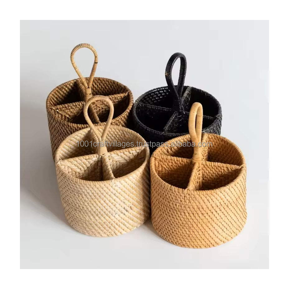Cesta de Ratán Natural con Asa, Organizador Hecho a Mano y Sostenible para Almacenamiento en el Hogar y la Cocina, Venta al por Mayor en Vietnam