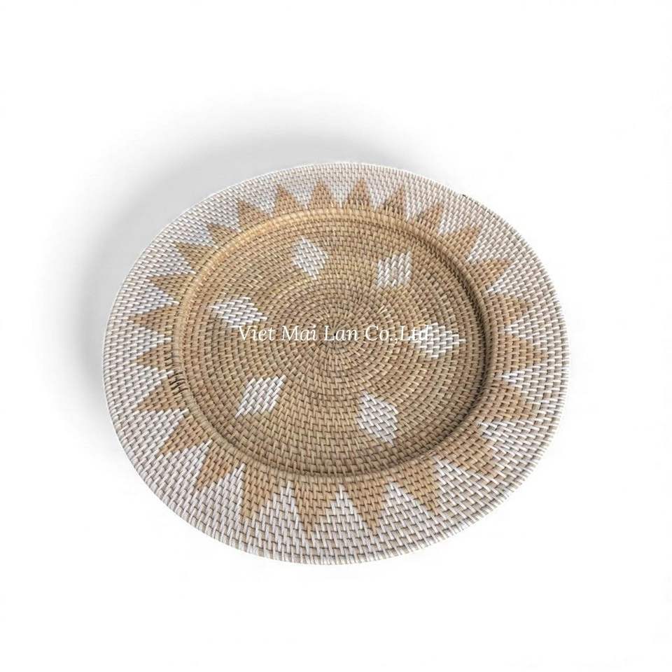Plato de Carga de Ratán Natural Tejido a Mano por Artesanos Vietnamitas para Decoración de Mesa de Comedor en Hogar, Restaurante y Hotel