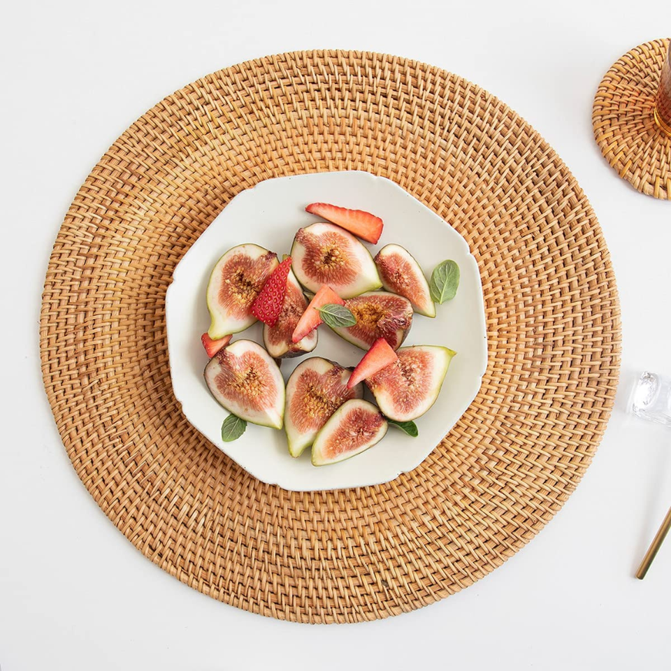 Posavasos de Ratán Natural Clásico con Incrustaciones de Cerámica, Hecho a Mano, Ecológico, Tejido, para Hogar, Cafetería, Regalo Navideño, Hecho en Vietnam