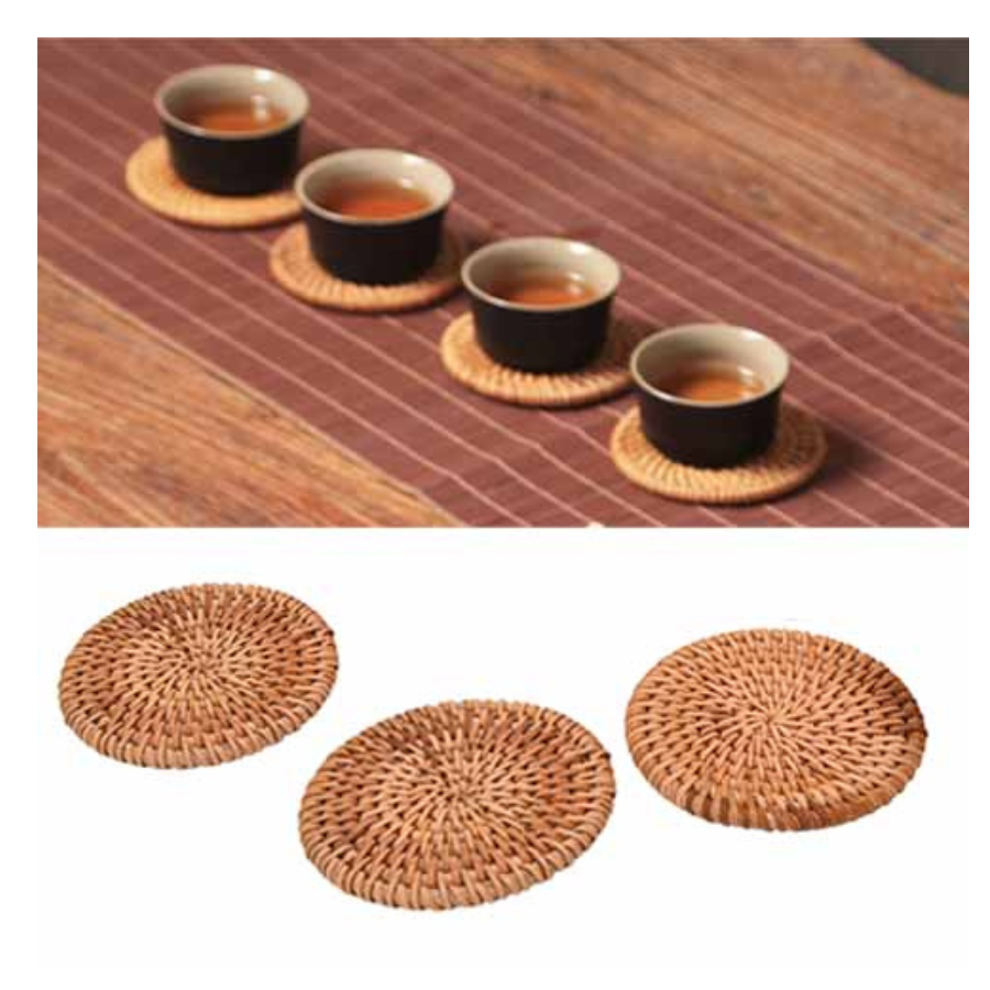 Plato de ratán natural, Mantel Individual redondo hecho a mano de Vietnam para comedor sostenible y exhibición de alimentos