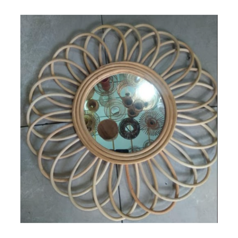 Espejo con marco de ratán natural, decoración de pared rústica para el hogar, cafetería y Resort