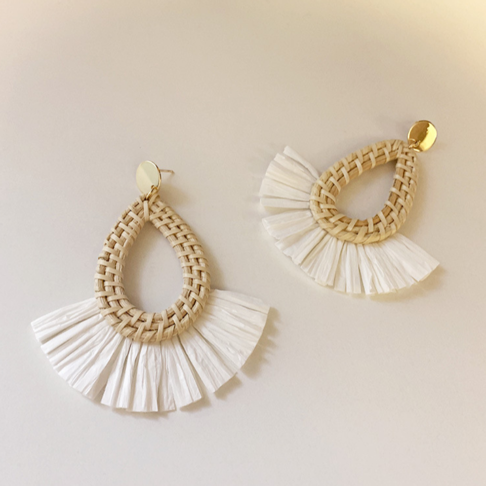 Pendientes de Aro de Ratán Natural Hechos a Mano, Estilo Boho, Ligeros, Joyería Ecológica para Mujer, TUYET DUNG, para Bodas, Hechos en Vietnam