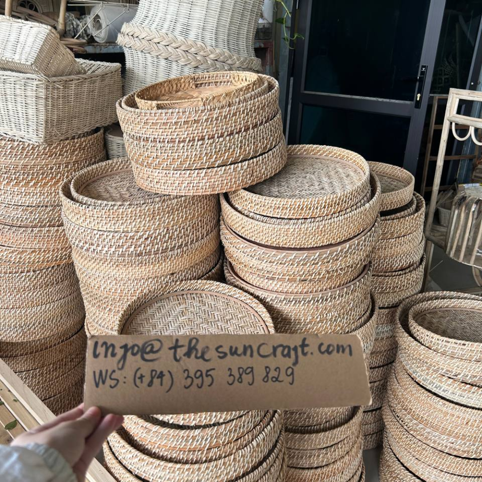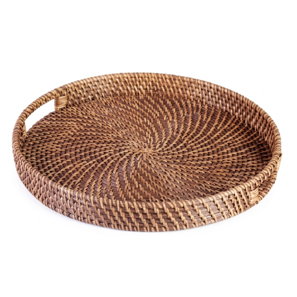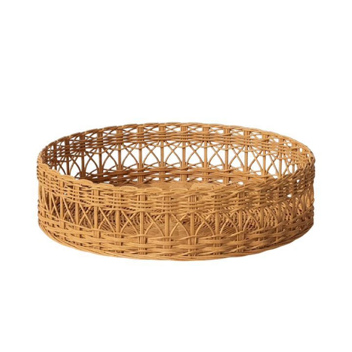 Bandeja de Servir de Ratán Natural, Plato Decorativo Tejido de Madera para Comedor, Cocina, Accesorio Estético para el Hogar