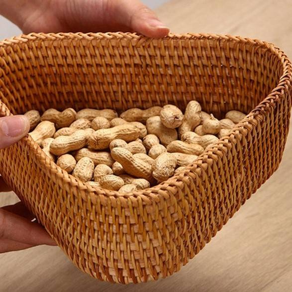 Bandeja Triangular de Ratán Natural para Frutas, Cesta de Servir Tejida a Mano para Frutas, Aperitivos, Almacenamiento en la Cocina, Decoración del Hogar, Exportador de Vietnam