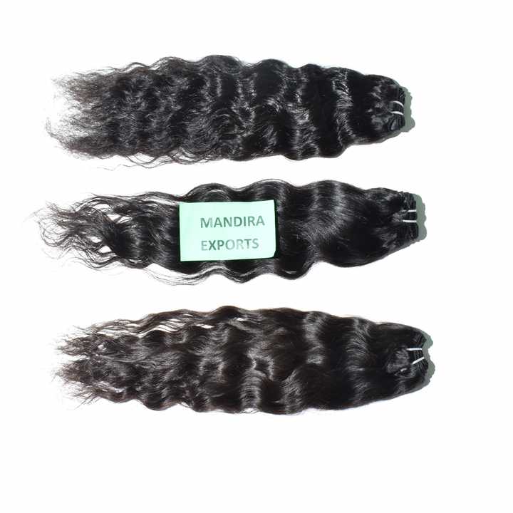 Extensiones de Cabello Humano Virgen Remy Natural Indio sin Químicos para Mujeres Negras, Ondulado, Tejido a Máquina, Doble Trama 10-32