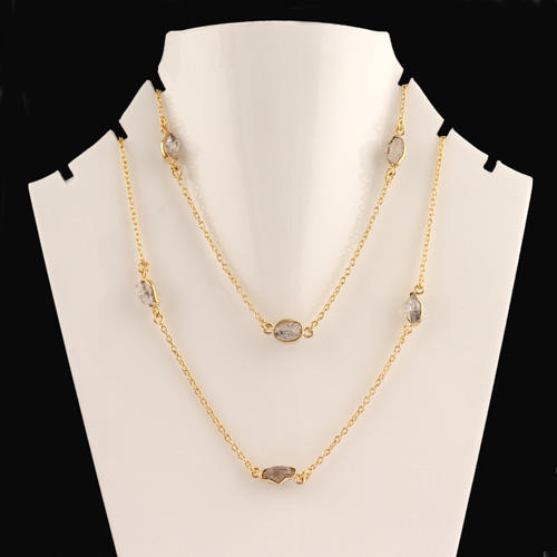 Collar herkimer de diamantes en bruto natural, ajuste de bisel, cadena fina de piedra múltiple, collar hecho a mano para un aspecto llamativo
