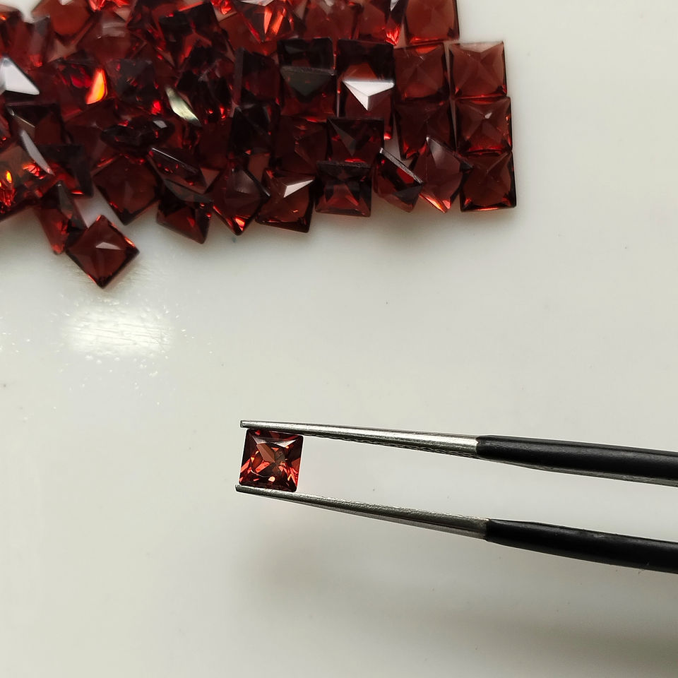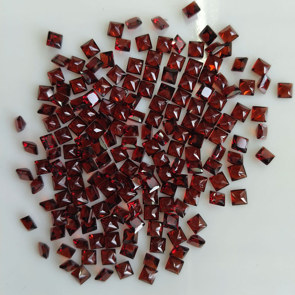 Granate Rojo Natural de 4MM, Corte Princesa Cuadrado, Gema Suelta de la Mejor Calidad para Joyería