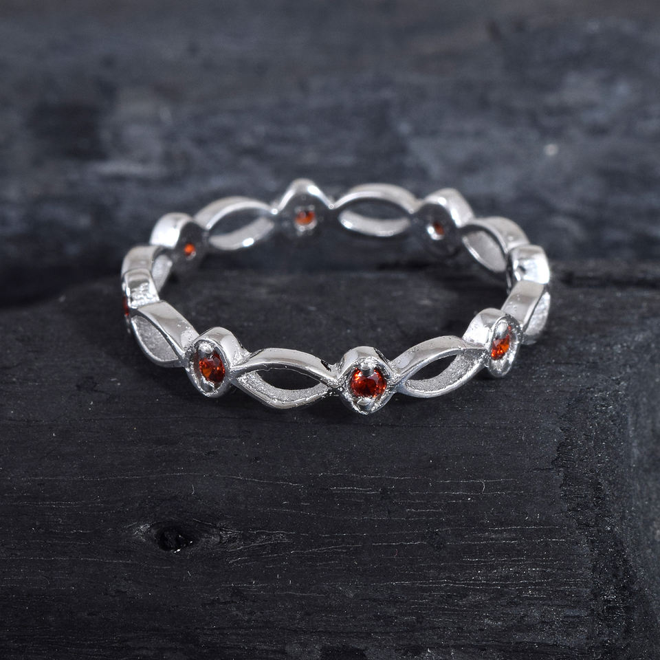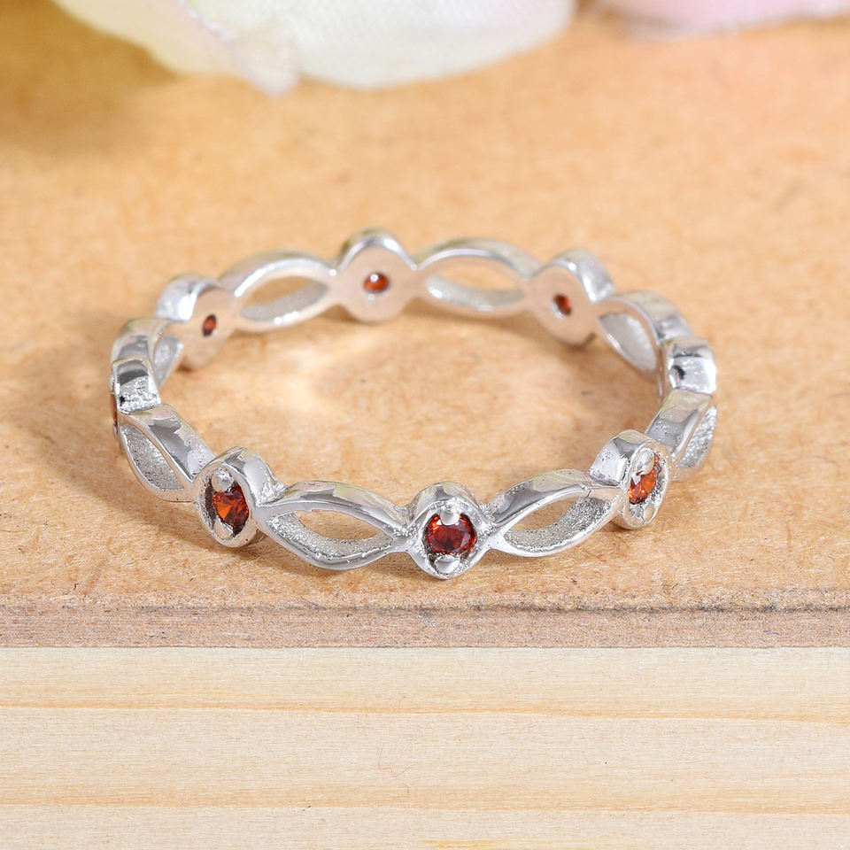 Anillo minimalista de piedras preciosas de rojo granate natural delicado, impresionante banda de Plata de Ley 925 de eternidad para bodas y fiestas