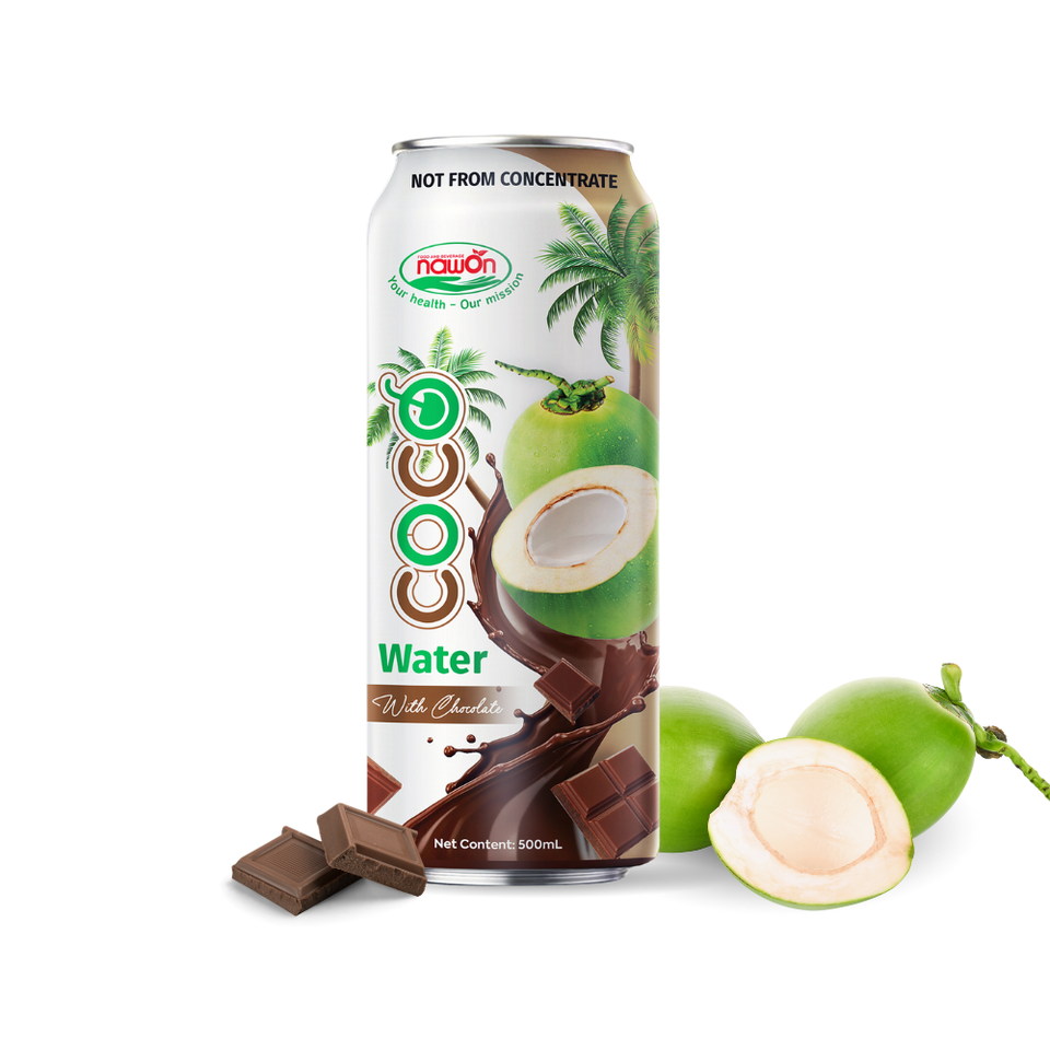 Agua de Coco con Chocolate Natural Refrescante 500ml en Lata NAWON Agua de Coco Pura con Sabor a Chocolate Fábrica de Bebidas de Vietnam