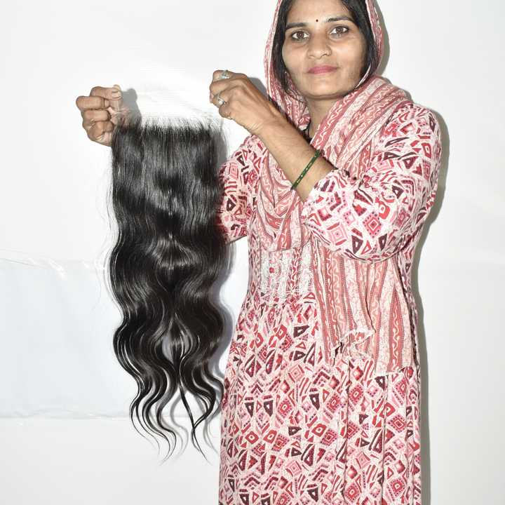 Extensiones de Cabello Humano Virgen Indio Natural Remy Sin Procesamiento Químico, Ondulado, con Cierre HD Sedoso, Ondas Sueltas, Color Negro