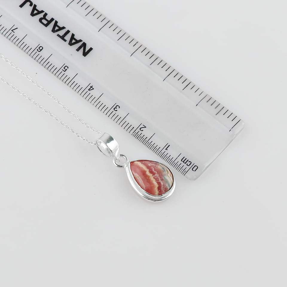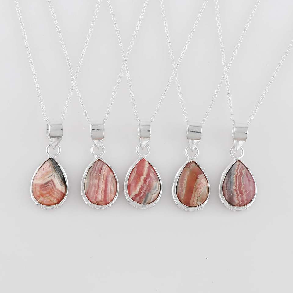 Collar con colgante de rodocrosita natural en forma de pera con engaste de bisel, cadena plateada, regalo para ella, piedra preciosa curativa, piedra de nacimiento