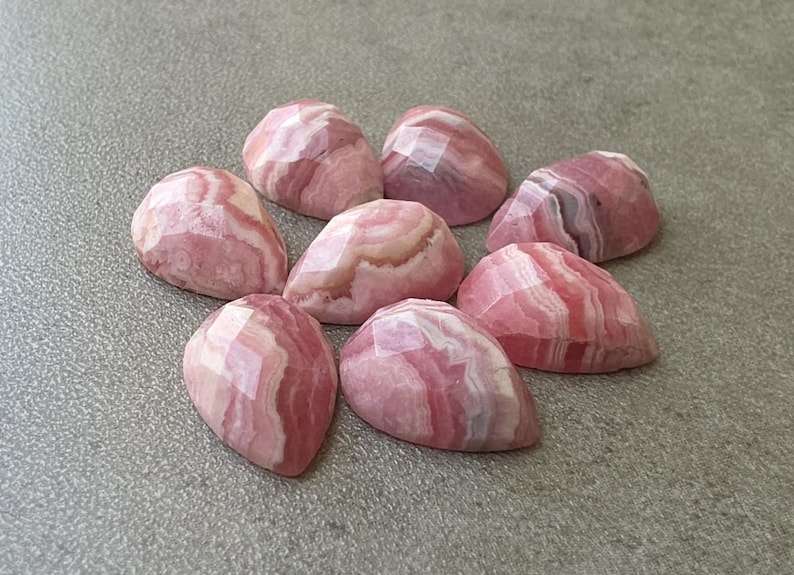 Rodocrosita Natural en Forma de Lágrima, Corte Checker, Parte Posterior Plana, Calibrada, Gema Suelta para Joyería