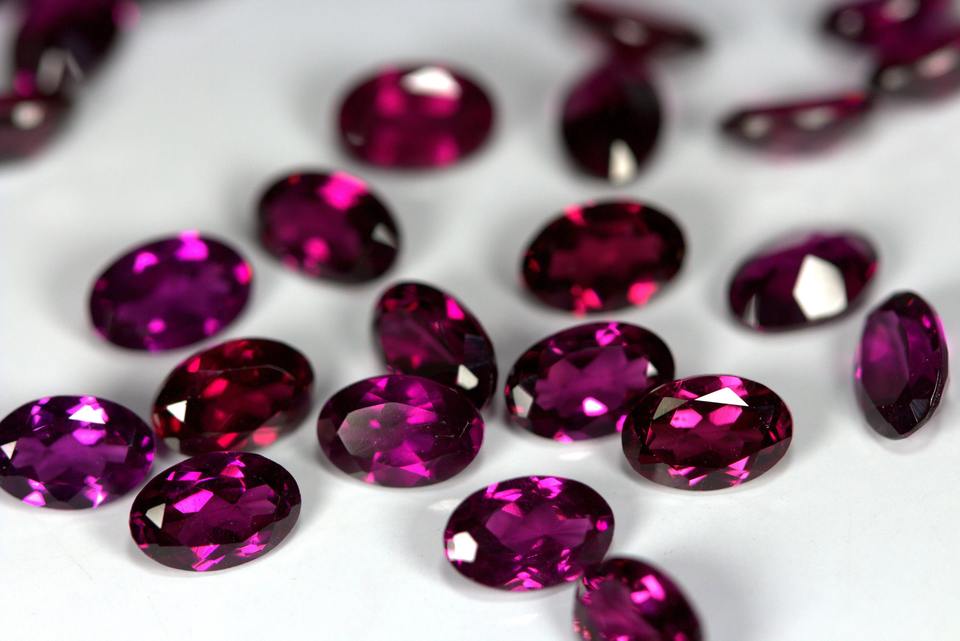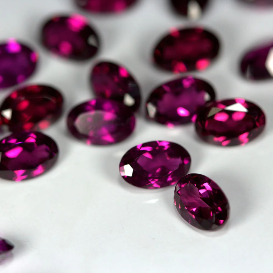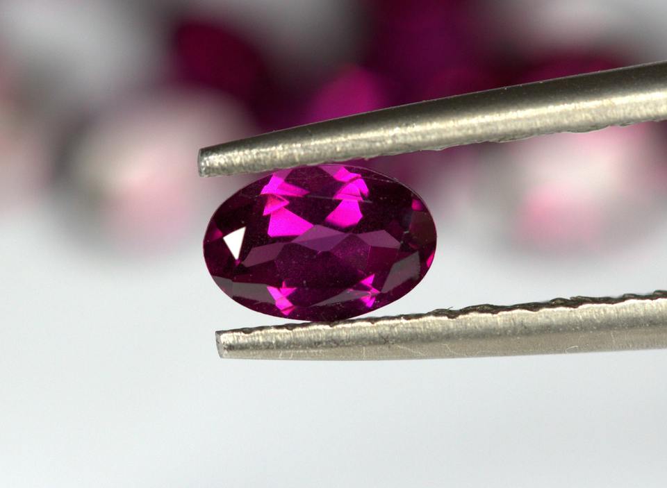 Piedra preciosa ovalada facetada de rodolita natural