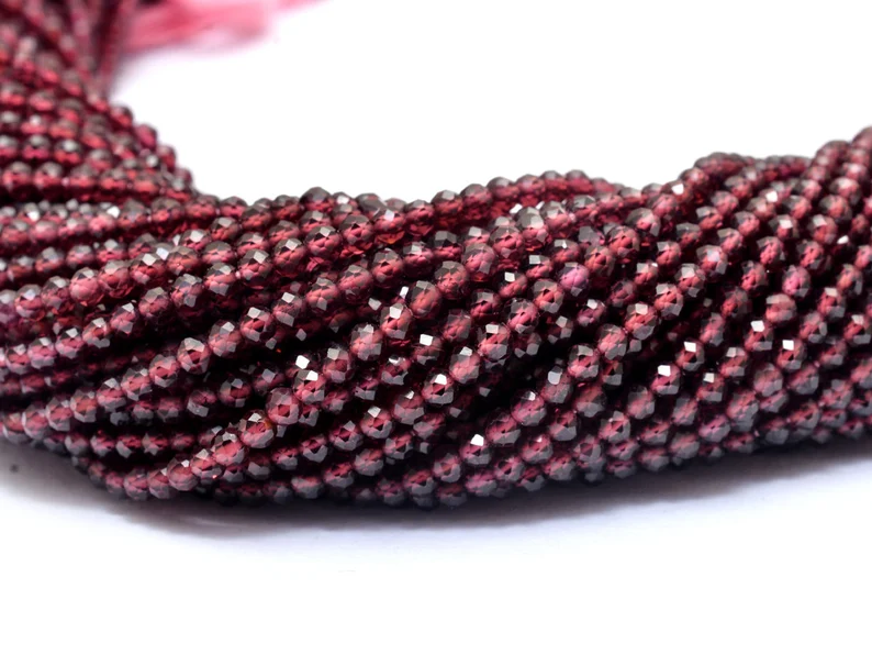 Granate rodolita natural 2mm-3mm cuentas microfacetadas | Strand 13 "| Cuentas redondas de piedras preciosas semipreciosas rodolitas para joyería