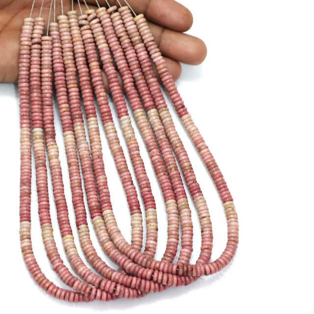 Cuentas redondas planas de rodonita natural con tonalidades | Cuentas de Piedras Preciosas Rosadas Lisas al por Mayor | Cadena de 15 pulgadas | Suministros para la Fabricación de Joyería