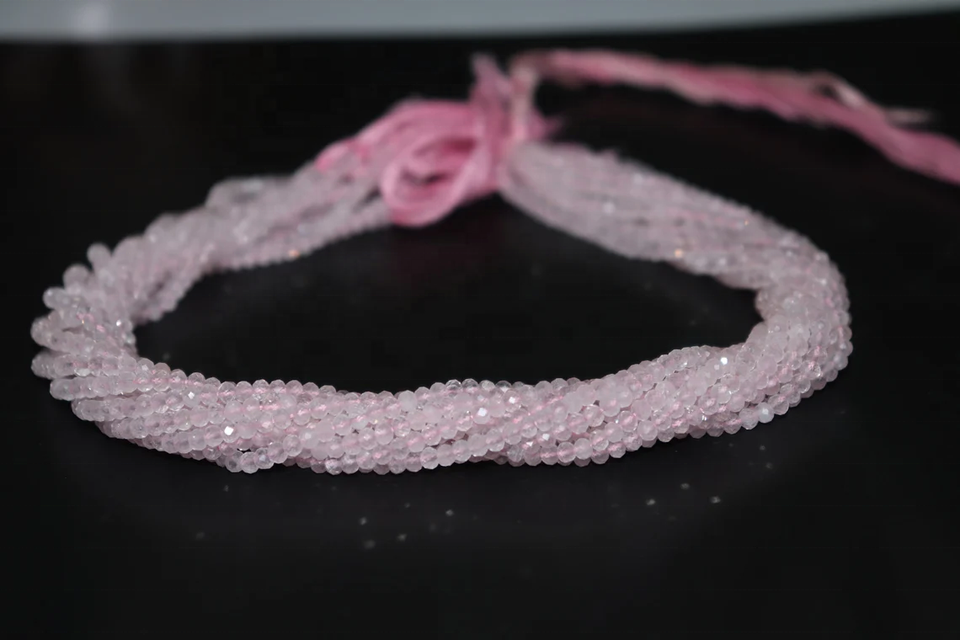 Cuentas Rondelle facetadas de cuarzo rosa natural 3-3,25mm 13 pulgadas hilo cortado a máquina para la fabricación de joyas