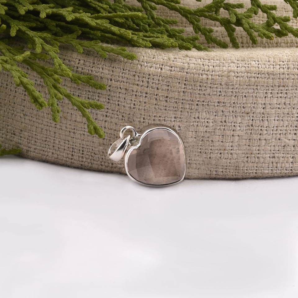 Colgante de Plata de Ley 925 con piedras preciosas en forma de corazón de cuarzo rosa natural con colgante de moda Chapado en plata para mujer.