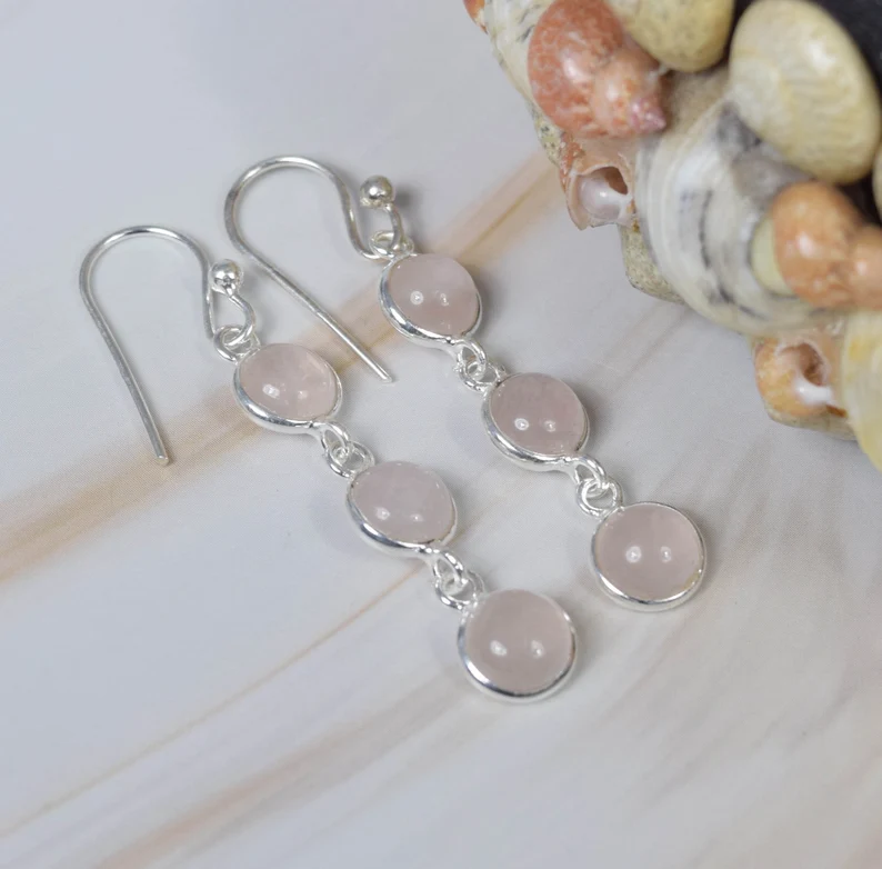 Nombre del producto:Pendiente de cuarzo rosa rosa