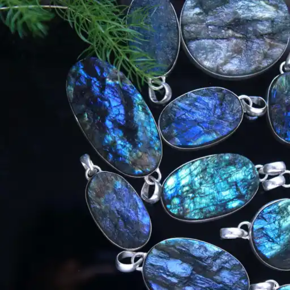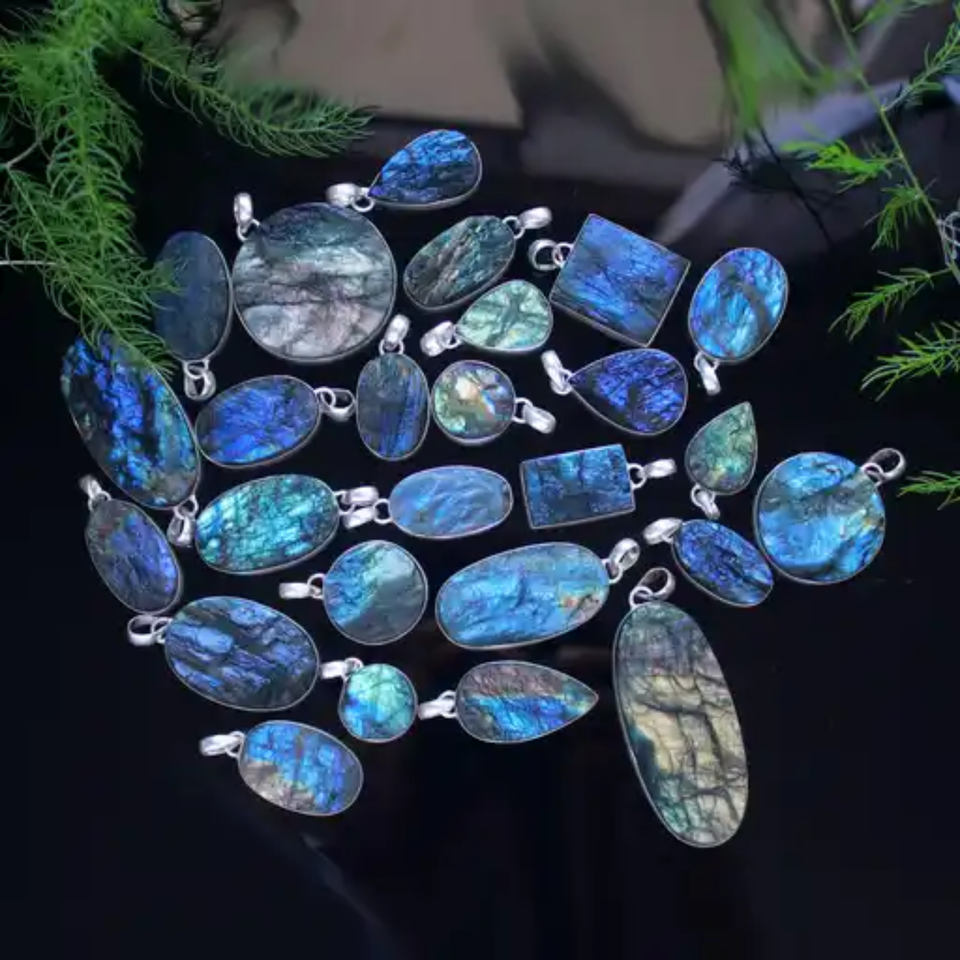 Piedra Preciosa de Labradorita Natural en Bruto, Plateada, para Joyería de Moda, Hecha a Mano, Azul/Multicolor, 25-30mm | 2026