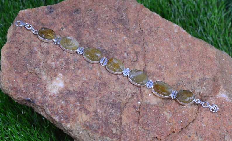 Cuentas de citrino amarillas en bruto naturales, pulsera religiosa de piedras preciosas de Plata de Ley 925, regalo de cumpleaños para mujer de 8 "de largo